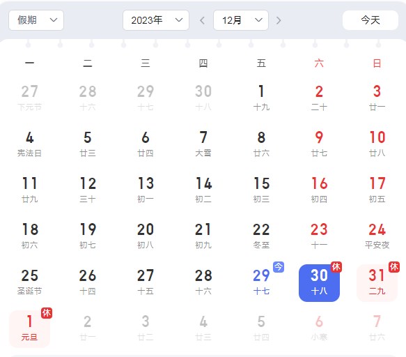 放假时间为:2023年12月30日至2024年1月1日止。