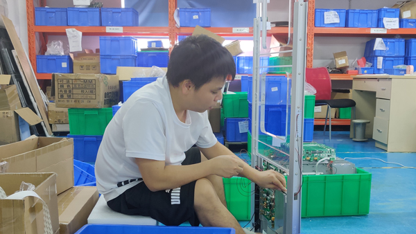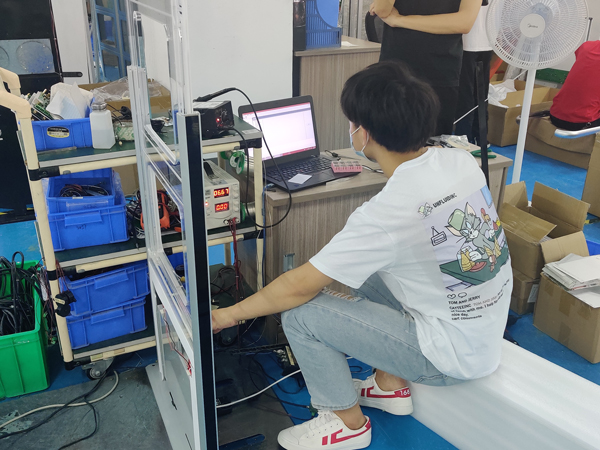 话不多说,我们赶紧来感受下比赛现场高强度的比赛气氛吧!咚咚咚,压线、剪线、剥线,整道工序一气呵成;哧溜哧溜,一个完整的固定架就出炉了;不到十分钟,调谐板焊接工位上就积攒了一些上道工序的半成品;组长立即调配队员进行调谐板焊接。随着人手调配,每位成员都在自己熟悉的工序上紧张而有序地操作着。等到亚克力C/EVA棉组装完成,立即进入调试和测试环节,这个阶段需要对天线调谐板参数进行调试、安装固件和配置文件,这里能够初步检测到前几道工序是否合格,以及直接影响到安全门最终效果,需要调试人员严格把关。参赛队员大展身手,充分展现劳动之美、技能之光。不到半个小时,一片半成品的安全门就下线了。