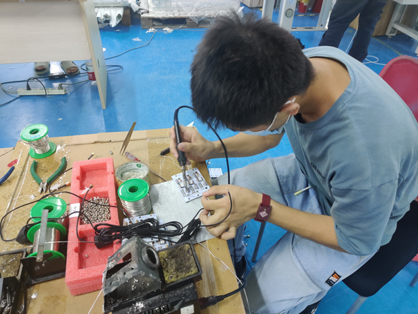 LSG 405的生产主要包括以下6道工序:压线、固定架组装、调谐板焊接组装、亚克力C/EVA棉组装、调试&测试、测试后组装。技能竞赛无疑是检验实践的最好的方法,只有平时练好基本功,才能在比赛中以优雅的姿态,展现自己最稳健的实力。